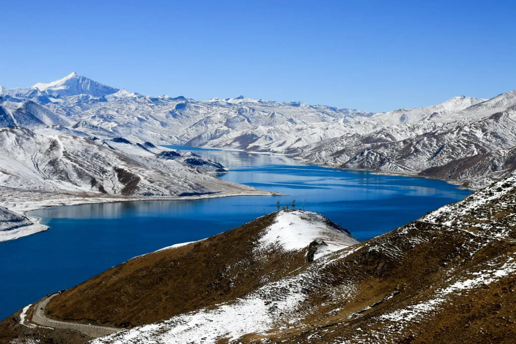 - Viewing Points: The best views of Yamdrok Lake can be enjoyed by walking along the highway after passing Gangbala Pass. There are several viewing platforms along the way for photo opportunities. The right side of the road to Yamdrok Lake offers a view of the Yamdrok Hydropower Station, the world’s highest-altitude pumped storage power station and a vital energy resource for southern Tibet. The best time to visit is from July to September, during the summer, but visitors should avoid rainy days for the best visibility.