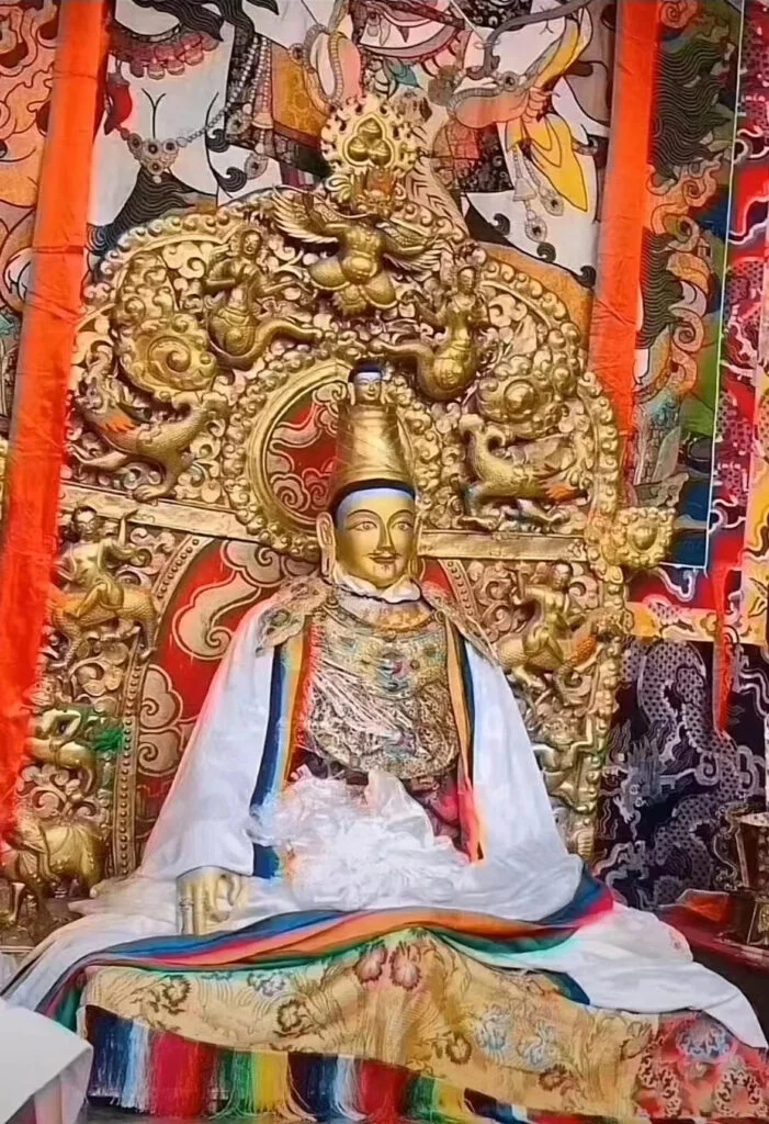 - Iconic Figures: Noteworthy sculptures include a pure gold statue of Sakyamuni Buddha, adorned with a jeweled crown, and a silver statue of the Fifth Dalai Lama in monastic robes, exuding dignity and grace. The life-sized silver statue of Tsongkhapa, dressed in monastic attire and sitting in meditation, radiates kindness, while Padmasambhava’s silver statue, holding ritual objects, presents an imposing figure.