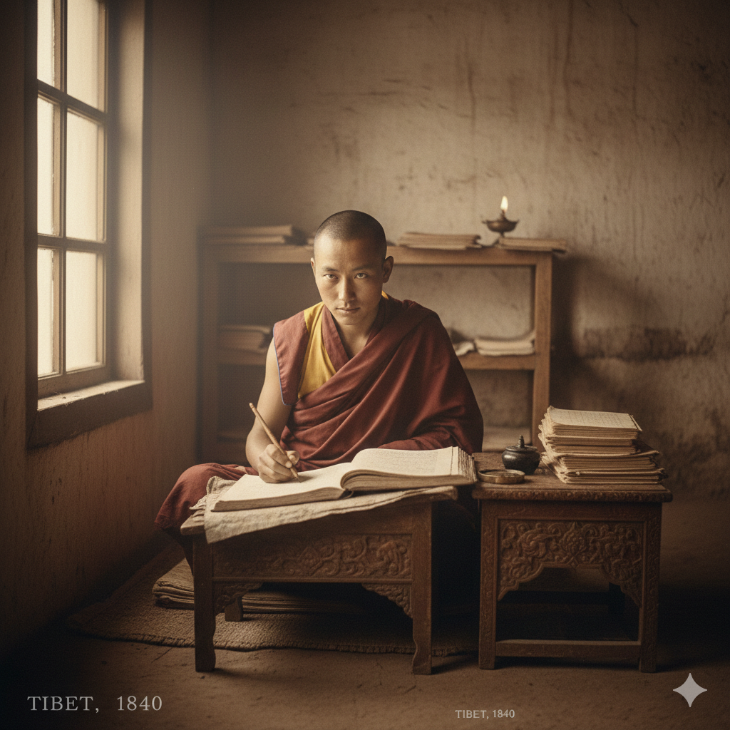 At 19, he undertook advanced studies under his uncle Dharmapa Zha, a leading authority on Tibetan grammar and orthography. Under his uncle’s guidance, he mastered phonetics (śabda-vidyā), Tibetan grammar, calendrical science, poetics, as well as exoteric and esoteric Buddhist scriptures, laying the foundation for his later scholarly achievements.