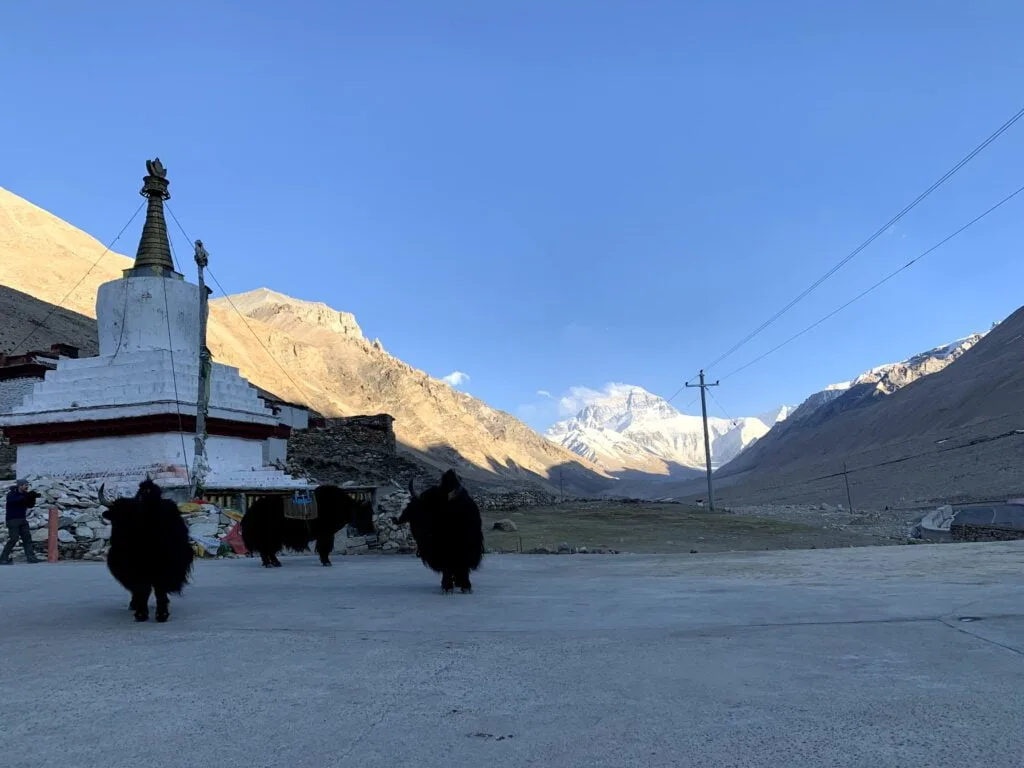 Drive to Rongbuk Monastery, located at the foot of Mount Everest. The journey offers stupendous views of the Himalayas on a clear day, featuring peaks over 8,000 meters, including Makalu, Lhotse, Everest, Gyachung, and Cho Oyu. Rongbuk Monastery, standing at 4,980 meters high, is the world’s highest monastery. Spend the night in a tent or guesthouse near Rongbuk Monastery.