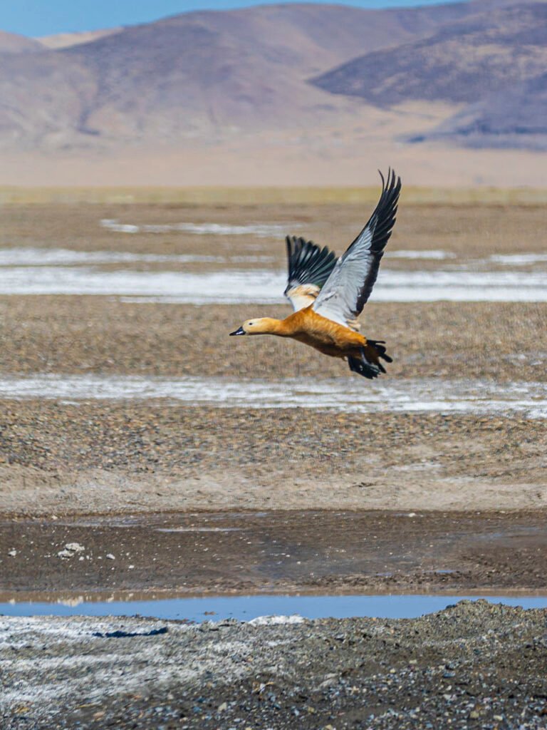 Bar-headed geese that remain cautious along crowded rivers elsewhere often fly calmly overhead in Tibet. Ruddy shelducks have been known to wander near villages like familiar neighbors.